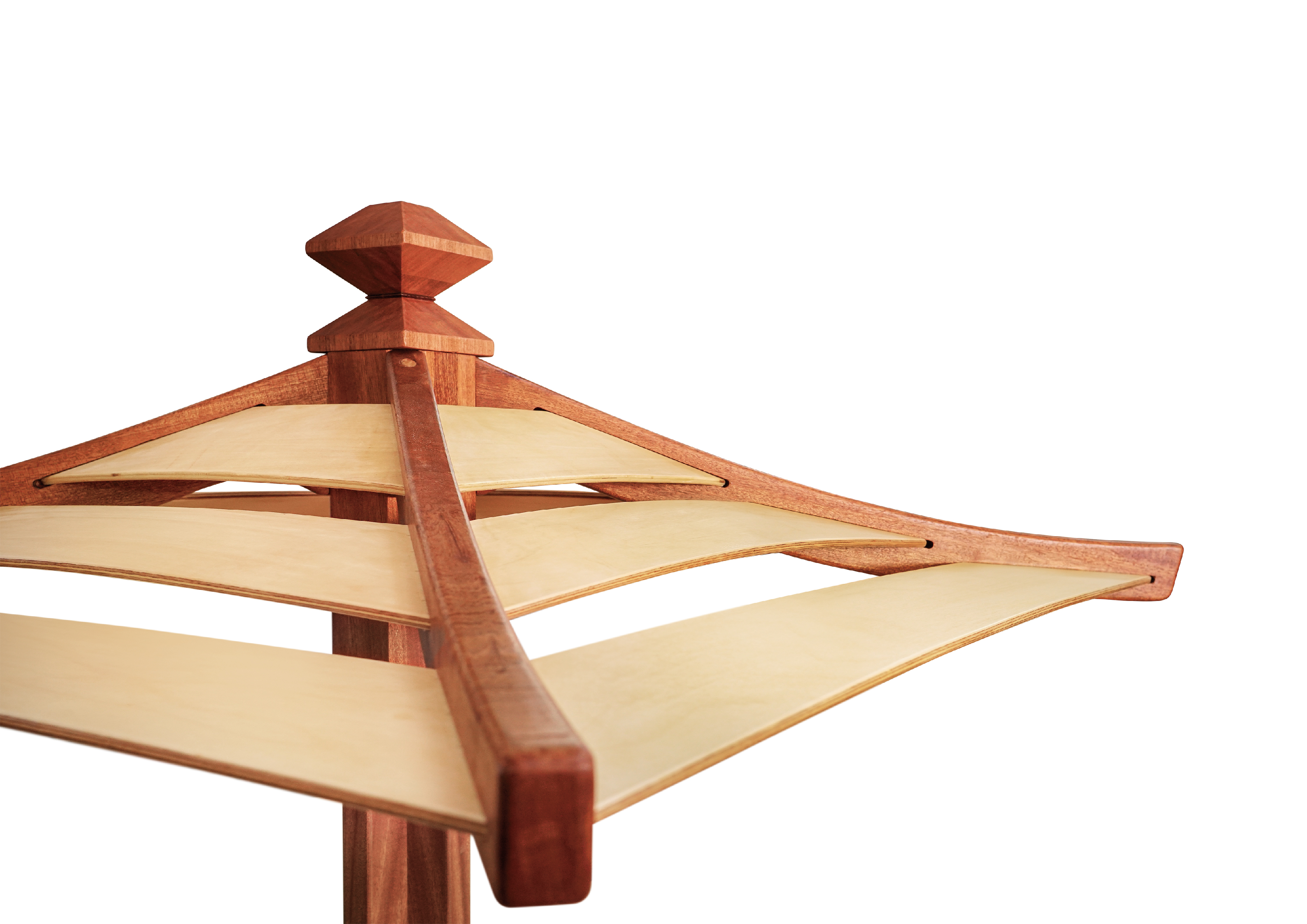 The design of the mobile library cart is inspired by the Chinese sedan chair and the architectural features of the Forbidden City.